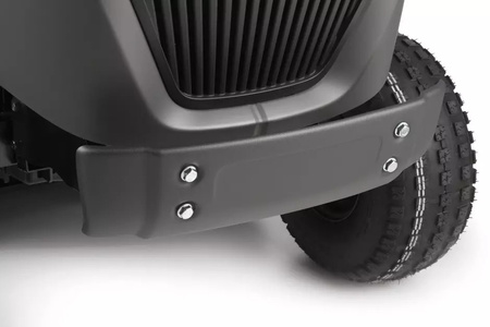 Dzięki bardzo szerokiemu, 102-centymetrowemu agregatowi koszącemu i dwóm zsynchronizowanym nożom, które optymalizują przepływ powietrza pod agregatem, maszyna w krótkim czasie skosi imponująco duży obszar oraz zbierze długą, mokrą trawę bez zatkania tunelu wyrzutu. Pojemny 300-litrowy kosz na trawę znacznie ogranicza liczbę postojów na opróżnianie kosza. Zestaw do mulczowania nie jest dołączony w komplecie.